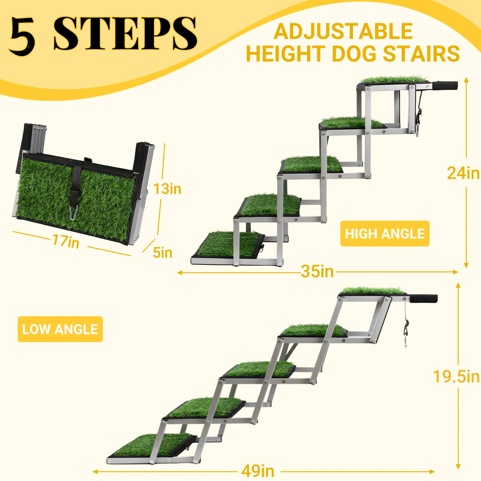 Extra Wide Dog Stairs for Large Dogs, Foldable Dog Ramp for Car with Non-Slip Surface, Dogs Stairs for Cars, High Beds, Truck, S